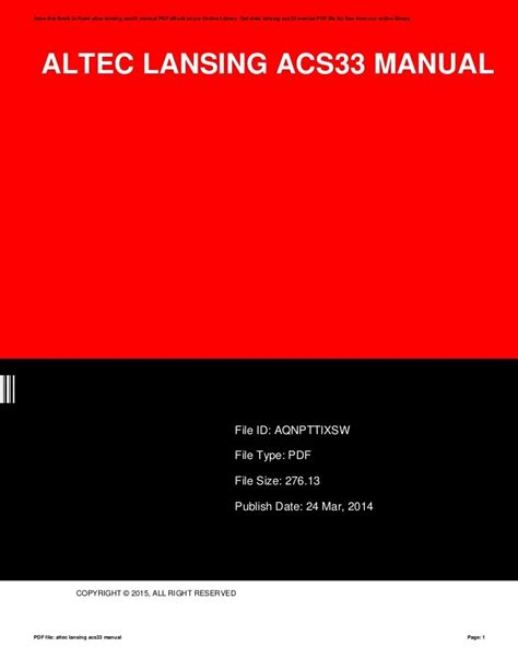 Naturally men and women wish to examine interesting altec lansing acs33 manual books, considering that people today want to know and become entertained concurrently. So if you are a book lover and you also are trying to find some tips on how to locate the most intriguing book to read through up coming time, here are some strategies for you: