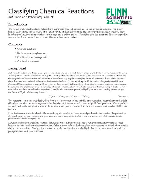 Title: - flinn classifying chemical reactions lab answers