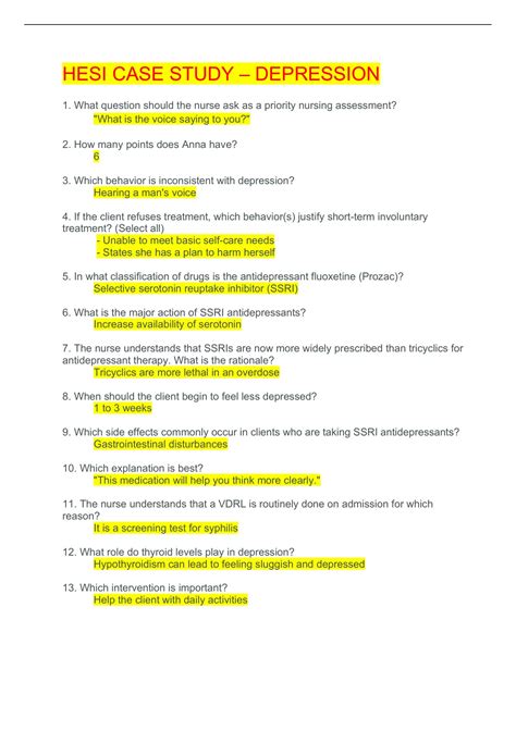 Title: - hesi case study depression answers