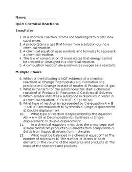 Title: - chemical reactions quiz and answers