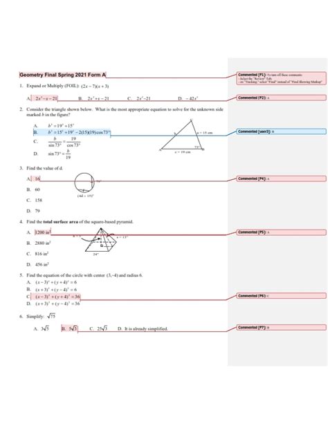 Title: - geometry final exam review answer key