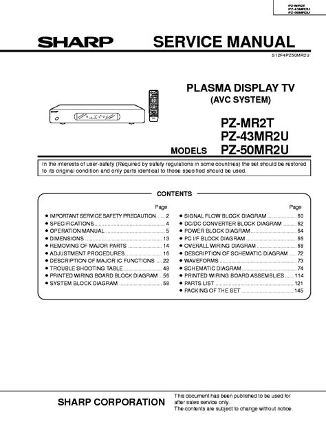 Title: - sharp pz mr2t repair service manual user guides