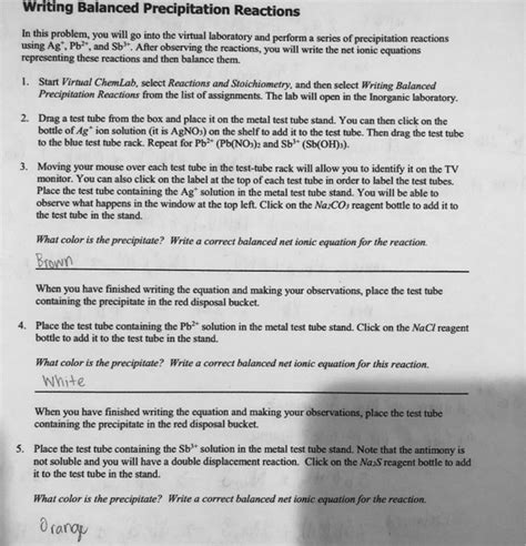Title: - virtual lab writing balanced precipitation reactions answers